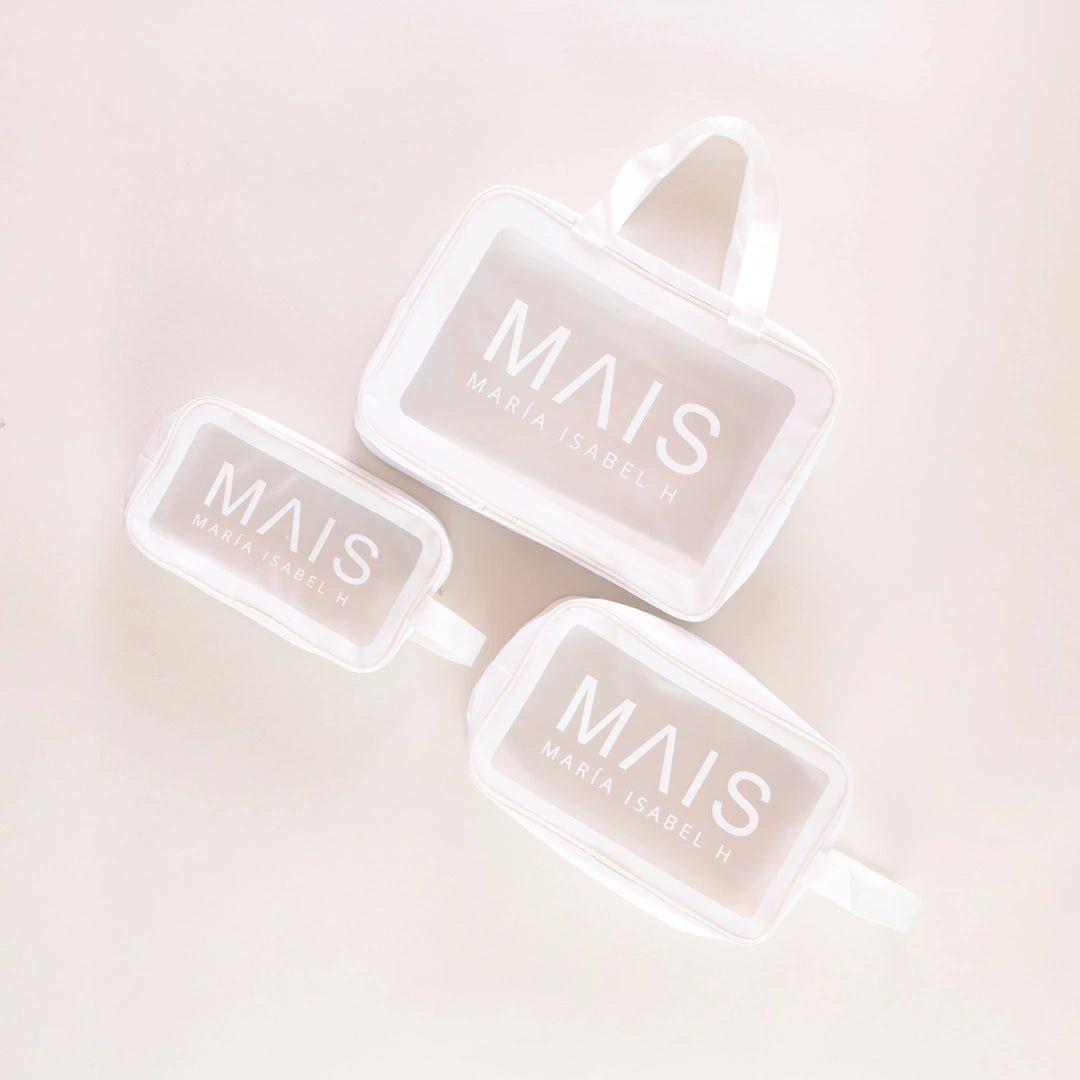 Las Cosmetiqueras MAIS combinan elegancia y practicidad para acompañarte en tu rutina capilar o de cuidado personal. Disponibles en tres tamaños (pequeña, mediana y grande), son el complemento perfecto para llevar tus esenciales MAIS con estilo, ya sea en tu bolso, maleta de viaje o tocador. Su diseño minimalista con detalles premium refleja la esencia de la marca: sofisticación, organización y funcionalidad.