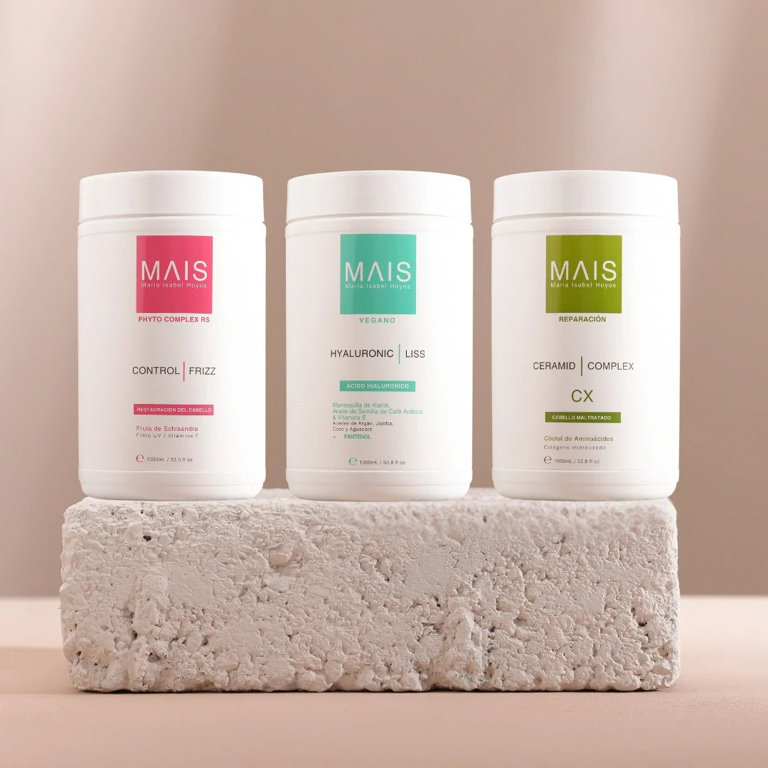 La Terapia Densificación Capilar MAIS une tres tecnologías de alto impacto: Ceramid Complex, Control Frizz y Hyaluronic Liss. El resultado es un protocolo profesional que repara desde el núcleo, controla el frizz y logra un alisado progresivo del 80 al 100% con duración de 3 a 6 meses. Todo con la ventaja de engrosar, fortalecer y devolver cuerpo al cabello debilitado por procesos químicos o desgaste natural.
